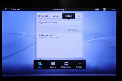 | Интерфейс пульта управления системами видеосвязи Cisco TelePresence. |