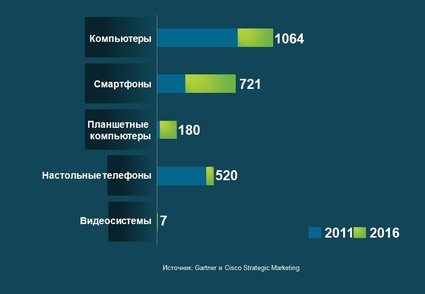 | На мобильной волне! Распространенность различных типов устройств на корпоративном рынке (в млн штук) |