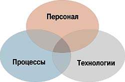 Модель производственной архитектуры объединяет взаимодействующий персонал, процессы и технологии. Персонал участвует в процессах, применяя технологии (рис. 1).