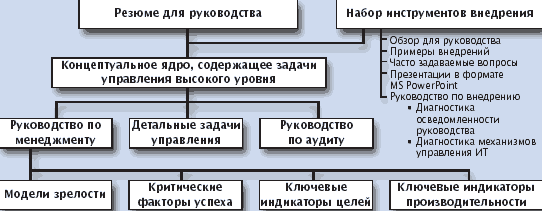 В состав третьей редакции COBIT входит несколько книг, включая «Резюме для руководства», «Концептуальное ядро», «Руководство по менеджменту», «Руководство по аудиту» и «Детальные задачи управления», а также «Набор инструментов внедрения».