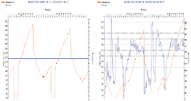 | Температурная кривая. Показывает изменение температуры внутри камеры смешения в ходе процесса. Справа на такую кривую наложена кривая изменения затрачиваемой мощности (голубая линия). Это уже «микроскоп» инженера-технолога. |
