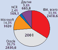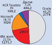 | Для платформ Unix и Windows в 2001 и 2002 годах на основе данных об объеме продаж новых лицензий (млн. долл.) | |