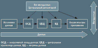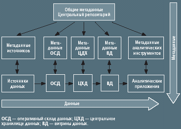 Ключом к пониманию смысла данных и правил их использования являются метаданные. Все современные программные продукты и инструменты, применяемые на различных этапах обработки данных, основываются на метаданных, которые представляют собой основной управляющий вход, задающий логику обработки. Для того чтобы заданный набор инструментов мог эффективно образовывать цепочку доставки информации и обеспечивал взаимодействие на уровне данных, необходимо единое понимание метаданных, описывающих обрабатываемые данные. Иными словами, все программные системы и инструменты, входящие в состав BI, должны быть интегрированы между собой на уровне метаданных прежде, чем они смогут быть эффективно интегрированы на уровне данных 0.