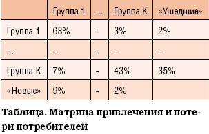 По итогам анализа матрицы, помимо оценки интенсивности выбытия и прибытия клиентов, можно выявить недостатки в предлагаемом покупателям продукте и определить те товарные группы, которые покупатели считают более привлекательными.