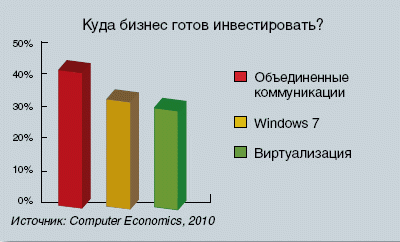 Операционная система Windows 7 является одной из главных, в которую компании готовы инвестировать средства, — таковы результаты исследования, опубликованного Computer Economics. На данный момент лишь 3% из числа опрошенных организаций осуществили миграцию, но еще 31% планируют переход уже в ближайшее время. Очевидно, что миграция на Windows 7 постепенно приобретает массовый характер. В число прочих технологий, находящихся в фокусе внимания компаний, входят объединенные коммуникации и виртуализация настольных компьютеров.