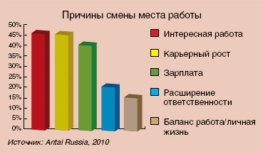 В последнее время произошли значительные изменения в списке самых востребованных специалистов. К примеру, в связи с возобновлением замороженных проектов и стартом новых вновь востребованы консультанты и менеджеры проектов по внедрению SAP. Стабильно высок спрос на разработчиков Java и бизнес-аналитиков — эти специалисты по-прежнему в дефиците. Компании готовы предлагать кандидатам на большинство позиций тот уровень зарплат, который держался до осени 2008 года. Кандидаты ощущают эти изменения и возвращаются к своим прежним зарплатным ожиданиям. Тем не менее, согласно результатам опроса, основными причинами для смены работы ИТ-специалистами являются более интересные задачи на новом месте работы и возможности карьерного роста. Более высокий уровень дохода в списке приоритетов занял лишь третье место.