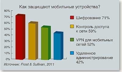 Как показывает глобальный опрос специалистов по информационной безопасности, проведенный аналитической компанией Frost & Sullivan, самую большую угрозу безопасности представляют уязвимости в приложениях — так считают 73% опрошенных специалистов. На втором месте оказались риски, связанные с использованием мобильных устройств. Планшетные компьютеры и другие устройства популярны, в том числе и у руководителей компаний, поэтому специалистам бывает трудно настаивать на принятии необходимых мер безопасности. Почти треть компаний до сих пор не ввела у себя официальные правила пользования мобильными устройствами. Однако специалисты применяют ряд технологий защиты устройств: шифрование, контроль доступа к сети, VPN для мобильных сетей, а также удаленное администрирование мобильных устройств с поддержкой очистки данных. Не все делается для снижения рисков со стороны социальных сетей. Хотя 60% компаний используют средства фильтрации и блокировки, в 31% компаний никаких ограничений на использование социальных сетей нет.