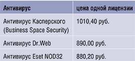 Цены на некоторые сертифицированные антивирусные решения (для защиты 50 рабочих станций и 5 серверов) приведены в табл. 2.