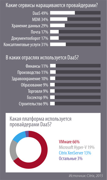 Как признают аналитики Citrix, рынок виртуальных рабочих мест (Desktop-as-a-Service, DaaS) все еще находится на этапе становления. 71% опрошенных поставщиков таких сервисов в течение года ожидают заметного роста выручки DaaS. Из них 52% считают, что рост составит от 16 до 50%, а 19% полагают, что он превысит 50%.