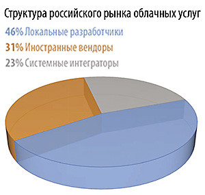 Объем рынка облачных сервисов в России по итогам 2016 года составил около 29 млрд руб. По оценкам TAdviser, лидирующие позиции – 46% рынка – заняли российские разработчики облачных решений, распространяющие свои сервисы как самостоятельно, так и через партнеров. Доля иностранных вендоров облачных решений составила 31%, а на долю интеграторов приходится 23% рынка.