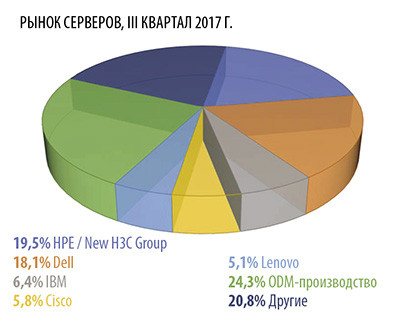 В третьем квартале 2017 года мировой объем продаж серверов вырос по сравнению с прошлым годом на 19,9% и составил 17 млрд долл. При этом количество проданных за квартал серверов выросло до 2,67 млн, что на 11,1% больше прошлогоднего.