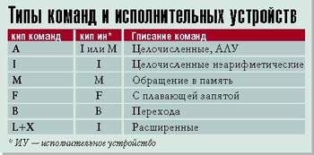 Всего имеется шесть типов команд (см. табл.), которым соответствуют типы исполнительных устройств микропроцессора, способные выполнить эти команды. Из описания не следует, что разные связки также не могут выполняться параллельно. Как бы то ни было, задача распараллеливания возлагается на компилятор, который должен генерировать «эффективные» связки (в суперскалярных микропроцессорах, напротив, распараллеливание выполнения осуществляет аппаратура). Разработать такой компилятор крайне сложно, и некоторые типовые математические алгоритмы для достижения максимальной производительности, как и ранее, придется, вероятно, писать на Ассемблере. Программистов, которые будут вручную сооружать связки во имя реализации идей EPIC, возможно, будут называть EPICурейцами.