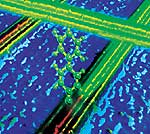 HP и университет также совместно запатентовали схему памяти, базирующуюся на молекулярных переключателях. Наконец, стало возможным связывание элементов молекулярного уровня со сформированными путем традиционной литографии микросхемами посредством химического процесса.
