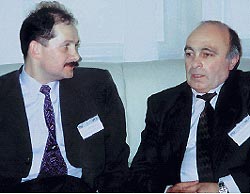 | Сергей Минаев и Гагик Джулакян обсуждают результаты прошедшего в Ереване семинара |
