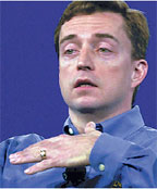 Но, пожалуй, самое динамичное развитие ожидает в ближайшие годы сферу беспроводных технологий. Гелсингер особо остановился на научно-исследовательской и проектно-конструкторской программе Radio Free Intel, призванной содействовать массовому распространению беспроводных средств коммуникаций за счет оснащения микрочипов Intel функциями беспроводной передачи данных.