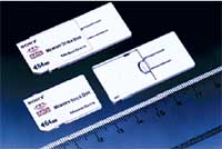 | Новый носитель Memory Stick Duo примерно втрое меньше и вдвое легче Memory Stick в стандартном исполнении |