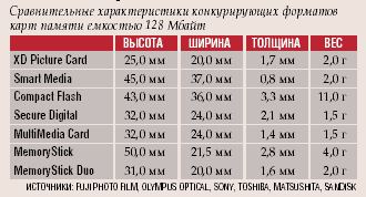 Таким образом, основными конкурентами XD станет память CompactFlash, емкость которой составляет на сегодняшний день 1 Гбайт, и карты SD, имеющие объем 512 Мбайт. Емкость большинства других форматов не выходит за рамки 128 Мбайт.