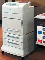 Принтеры HP color LaserJet 5500/n/dn/dtn/hdn предназначены для средних и малых рабочих групп, которым нужно в процессе работы печатать листы формата A3, например, для рекламных или дизайнерских агентств. Эти модели пришли на смену HP LaserJet 5000/N/GN, по сравнению с которыми повышена скорость цветной печати (до 22 стр./мин) за счет использования новой технологии печати с вертикальным расположением картриджей, процессора с тактовой частотой 400 МГц, увеличения памяти до 96 Мбайт.