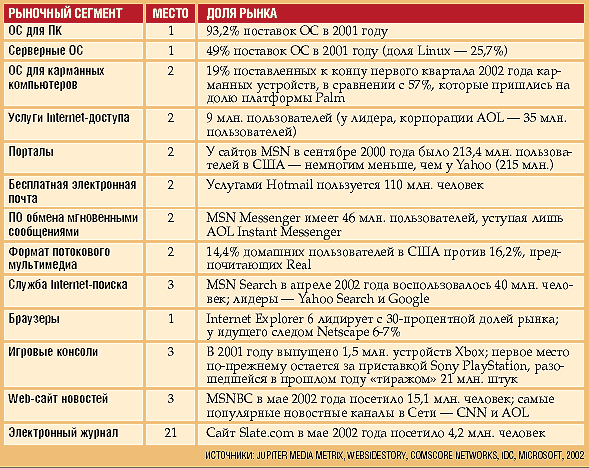 Пятилетнее противостояние, похоже, завершается. За это время впору было забыть о том, что поводом для него послужил спор относительно комплектации настольных операционных систем. Между тем фактическое доминирование Microsoft на целом ряде сегментов рынка только усилилось. В некоторых случаях это особенно бросается в глаза, если анализировать данные для американского рынка |
