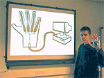 В перчатку вмонтирован КМОП-датчик, который выполняет 1500 фотоснимков в секунду. Все они передаются на цифровой процессор обработки сигналов, действующий со скоростью 18 миллионов операций в секунду. Он выявляет закономерности в изображениях и характер изменения изображений. На основании этих данных процессор определяет, как далеко переместилась мышь, и посылает соответствующие координаты в компьютер, компьютер управляет перемещением курсора. Эта последовательность операций выполняется сотни раз в секунду, поэтому движение кажется плавным. Указательный палец играет роль левой кнопки, средний — правой. Микропереключатель регистрирует сгибание пальца, что означает нажатие на соответствующую клавишу. Но самый замечательный элемент перчатки — вплетенные в нее нити, имитирующие мускулы. Таким образом, пользователь получает обратную связь. Если играть в какую-нибудь «стрелялку» в такой перчатке и «держать оружие», компьютер посылает сигнал на перчатку, ограничивая движение руки пользователя, у которого создается впечатление, будто он и правда держит в ней ружье.