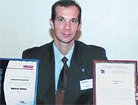 | Евгений Бахин с сертификатом от Гостехкомиссии и дипломом от компании Aladdin |
