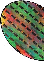 Это соединение (фоторезист) подвергается воздействию ультрафиолетового облучения через специальный шаблон, или маску, для закрепления участков, обработанных излучением. Необработанные области протравливаются горячим газом, который обнажает подложку диоксида кремния, находящуюся внизу. Подложка и нижний слой кремния вытравливаются для получения пластины нужной толщины.