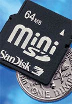 На выставке CeBIT были представлены новейшие достижения производителей в борьбе за уменьшение размеров карт. Ассоциация SD Card Association продемонстрировала самую миниатюрную на сегодняшний день карту памяти SD. Новая карта, получившая название MiniSD, является самым маленьким на сегодняшний день носителем, который проектировался для использования в компактных портативных цифровых электронных устройствах типа сотовых телефонов и цифровых музыкальных проигрывателей.
