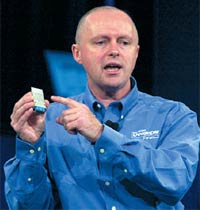 По словам Мэлони, Intel уверенно вступает в эру нанотехнологий. Уже в текущем году в производстве будет использоваться технология 90 нм (реальная длина транзистора и того меньше — 50 нм), в 2005 году — 65 нм, в 2007 год — 45 нм, а в 2009-м — 32 нм (и появятся прототипы с типоразмером 15 нм).