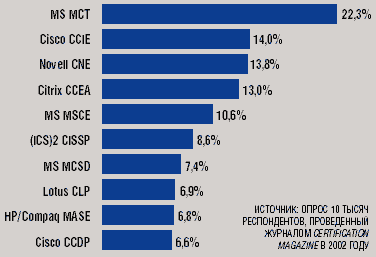 Опрос почти 10 тыс. человек, проведенный сотрудниками Certification Magazine в 2002 году, позволяет дать утвердительный ответ на этот вопрос. Несмотря на противоречивые новости, поступающие с экономических фронтов, и устойчивое сокращение затрат на ИТ в течение всего 2002 года, сертифицированные профессионалы по-прежнему имеют возможность по достоинству оценить тот выигрыш, который приносят им сертификаты. Почти 80% опрошенных в нынешнем году планируют получить дополнительные сертификаты.