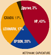 Рынок 2002 Доли компаний на рынке струйной печати, 2002 год |
