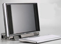 Если смотреть на компьютер спереди, то его можно спутать с телевизором с плоским экраном, который наклонен чуть назад, чтобы смотреть на изображение было удобнее. Компоненты, выдающие в устройстве ПК, «спрятаны» — интегрированы в основание дисплея с задней стороны. (Вообще-то устройствам LCD PC от роду уже больше пяти лет. Помнится, еще в конце 1997 года подобный компьютер демонстрировала в Москве компания Acer. Однако тогда спутать LCD PC с телевизором было практически невозможно. — Прим. ред.)