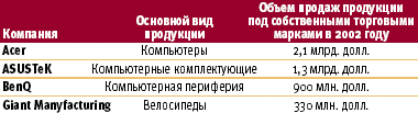 Раньше продукцию тайваньских компаний, как правило, относили к категории «noname», большую долю в объемах производства занимали заказы известных зарубежных фирм. В последнее время на Тайване начинают уделять все большее внимание продвижению собственных торговых марок как на азиатском, так и на мировом рынке. Фирмы ИТ-индустрии возглавляют этот процесс, флагманом которого является компания Acer. В 2001 году подразделение Acer Communications & Multimedia было переименовано в фирму BenQ, которая менее чем за два года сумела создать одну из самых успешных на Тайване торговых марок