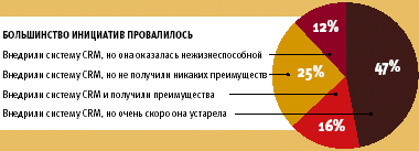 Недавнее исследование AMR Research показало, что очень немногие CRM-проекты окупаются. Впрочем, этот показатель небесспорен, поскольку многие компании оказываются просто не в состоянии определить успех такого проекта и его цели. Компании с самого начала должны формировать свою стратегию в области CRM, и эта стратегия должна определять, как будет оцениваться успех и какие показатели будут действительно важны, подчеркивают в AMR. Компаниям, твердо намеренным реализовать CRM-проекты, аналитики предлагают провести изменения, которые захватывали бы все предприятие, установить четкие критерии оценки и цели. Кроме того, необходимо наладить четкое взаимодействие разных подразделений — отдела продаж, маркетинга и ИТ-службы