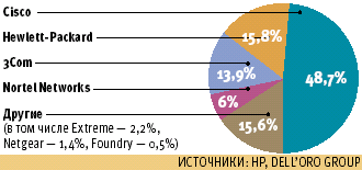 Наилучшее же положение HP занимает в регионе EMEA (Европа, Ближний Восток, Африка), где, по данным Dell?Oro, компания НР заняла в третьем квартале второе после Cisco место измеренного в портах рынка коммутаторов, обладая почти 16%. По словам Лады, в 2003 финансовом году рост европейского сетевого бизнеса HP достиг 35%, а российского — 98%.