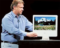 Эти обещания прозвучали во время его выступления на открытии Apple Expo в Париже. Как и у предшествующей модели, экран нового компьютера iMac находится на подставке, однако процессор, жесткий диск и DVD-привод скрыты за экраном, а не в его основании.