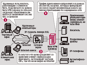 В Net6 утверждают, что VPN Gateway предоставляет полный доступ к сетевым приложениям без изменения конфигурации сетевого экрана и без обновления политик взаимодействия с удаленным клиентом