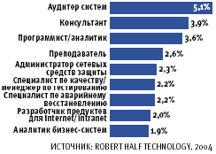 пришли специалисты аналитической компании Foote Partners по результатам опроса 45 тыс. служащих и 1860 работодателей в США, Канаде и странах Европы. После того, как в 2004 году оплата труда сертифицированных и специалистов и служащих, не имеющих отраслевых серфикатов, в среднем по рынку ИТ снизилась, соответственно, на 4,2 и 0,5%, оплата труда специалистов в сетевой сфере выросла на 6%. Востребованными оказались также служащие, имеющие опыт работы с системами обработки сообщений — рост составил 4,5%, а также разработки приложений — 4%.