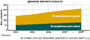 По их мнению аналитиков IDC, бизнес-сектор США и стран Азии сейчас находится в середине цикла обновления, признаком этого служит то, что продажи машин корпоративного класса растут быстрее, чем домашних ПК.