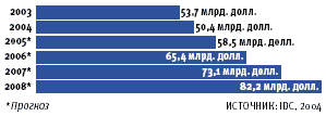 с 6 до 12%, и, хотя, в последующие годы рост несколько замедлится, в 2008 году объем рынка сетевого оборудования составит солидную цифру — 82,2 млрд. долл.