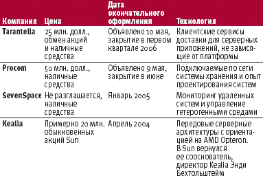 Sun Microsystems приняла решение о покупке компании Tarantella, производителя инструментальных средств удаленного доступа к приложениям. Общая сумма сделки оценивается в 25 млн. долл. Эту сделку еще должны одобрить соответствующие государственные органы и акционеры Tarantella, но компании рассчитывают завершить все формальности к концу сентября.