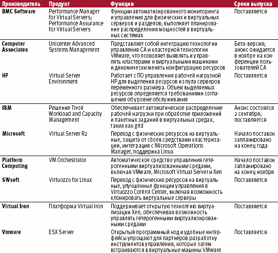 | Рынок средств виртуализации переживает подъем. Эта идея относится к числу модных. Для того, чтобы выделиться из числа активных конкурентов, компании предлагают разнообразные средства, в том числе средства управления виртуальными серверами |