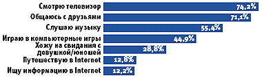 В 2004-2005 годах объединение «Юнпресс» провело опрос подростков 12-16 лет, пытаясь выяснить, чем же они занимают свободное время (допускалось несколько ответов). Вот некоторые популярные ответы: