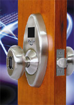 Дверную ручку BioKnob можно поставить вместо любой стандартной с замком и забыть о ключах. Ручка «узнает» тех, кому вход разрешен, по отпечаткам пальцев. Замок снабжен клавиатурой и жидкокристаллическим дисплеем, с помощью которых выполняется регистрация и удаление авторизованных входящих. Сканер отпечатка большого пальца находится в центре ручки. Всего замок запоминает до 100 имен. Производитель биозамка — компания Tychi Systems.