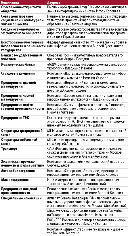 Лауреатами премии «IT-Лидер» 2006 года в соответствующих номинациях стали