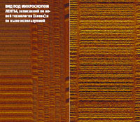 | Вид под микроскопом ленты, записанной по новой технологии (слева) и по ныне используемой |