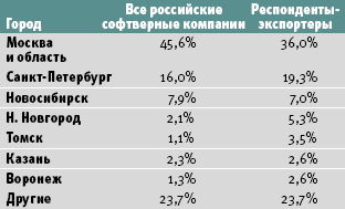 В городах, в которых спрос на программное обеспечение относительно невелик, софтверные компании в большей? степени ориентированы на экспорт