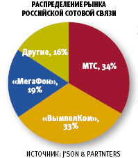 Компаниям «Мобильные ТелеСистемы», «ВымпелКом» (торговая марка «Билайн») и «МегаФон», по сведениям аналитиков J?son & Partnters, принадлежит сегодня около 86% совокупной абонентской базы сотовой связи России. При этом у МТС примерно 49 млн. клиентов (34% рынка), у «ВымпелКома» — 47,1 млн. (33%), а у «МегаФона» — 26,6 млн. (19%). Первая компания в 2005 финансовом году заработала 5,01 млрд. долл. (в эту сумму входят операции, совершенные на территории России, Украины, Белоруссии, Узбекистана и Туркменистана), вторая — 3,21 млрд. долл., а третья — 2,39 млрд. долл.