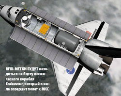 | RFID-метки будут находиться на борту космического корабля Endeavour, который в июле совершит полет к МКС |