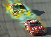 Профессор Вашингтонского университета Зоран Попович и два его студента около года тому назад написали программную реализацию уравнений Навье-Стокса, описывающих движение жидкостей и газов, которая благодаря приближениям и оптимизациям обладает чрезвычайно высоким быстродействием. С тех пор алгоритм неоднократно лицензировался для создания цифровых киноэффектов, а недавно им решили воспользоваться в компании Sportsvision. На его основе в ней разработали программу, которая в реальном времени визуализирует воздушные потоки, обтекающие автомобили в гонках NASCAR, и тем самым повышает зрелищность состязаний. Разные цвета соответствуют различным скоростям потоков — эффект позволяет, например, наблюдать, как пилоты пользуются методом преследования на минимальном расстоянии для экономии топлива или набора скорости