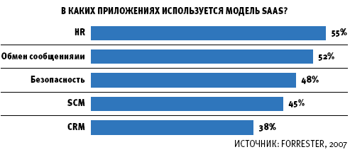 Интерес к приложениям, распространяемым в рамках модели SaaS, испытывают более половины компаний, как утверждают в Forrester. Несмотря на то, что схема SaaS позиционируется как ориентированная в первую очередь на небольшие компании, в большей степени ее используют на крупных и очень крупных предприятиях. Среди крупного бизнеса доля организаций, уже использующих приложения SaaS, осуществляющих пилотные проекты или обозначающих свою заинтересованность как «очень высокую», составляет 41%. В секторе SMB этот показатель не превышает 20%. В России же приложения, распространяемые в рамках модели SaaS, наоборот, пока находят спрос именно у компаний малого и среднего бизнеса. Крупные же отечественные предприятия предпочитают покупать лицензии на ПО.